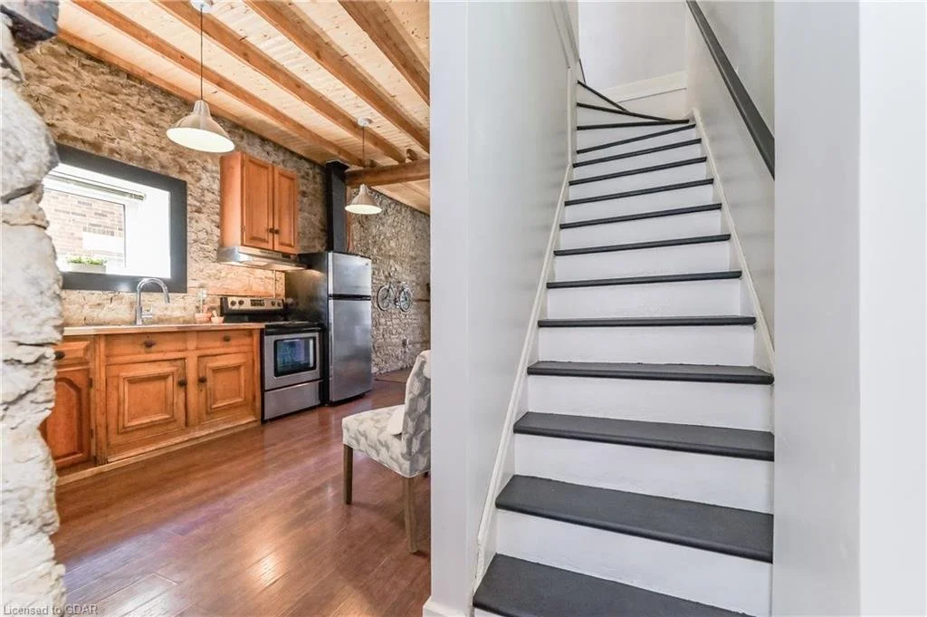 Our charming 1860 open-stone townhome awaits you in the heart of Fergus steps away from the beautiful Grand River. Come experience our cozy three-floor charm, complete with a queen suite, loft, full kitchen and our brilliant sunroom with fireplace. Centrally located in the historic district of Fergus, we are just minutes away from the scenic town of Elora. Explore the nearby hiking trails or immerse yourself in the local culture at one of the many annual festivals, such as the Fergus Highland Games, Riverfest Music festival, or our many culinary adventures.